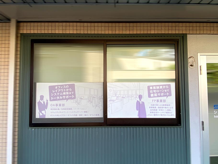 | 施工内容 | カッティングシート、スリガラスシートの貼り付け |