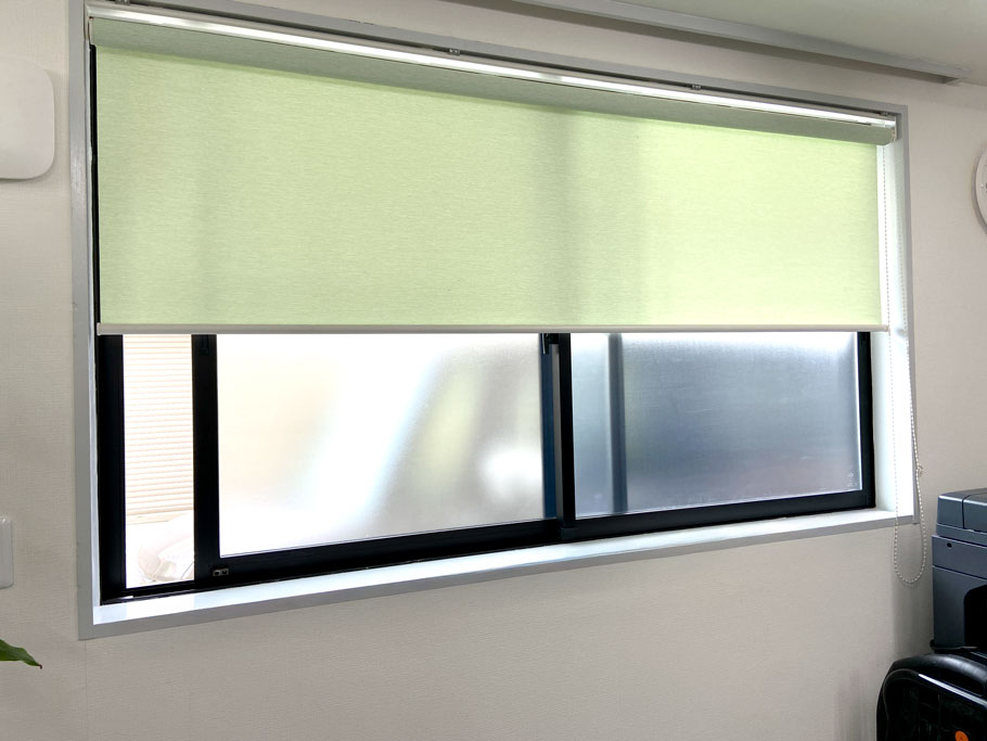 窓ガラスの下半分にスリガラスのシートを貼り付けることでプライバシーを保護しつつ、オフィスに光を取り入れることができます。